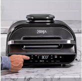 کنترل پنل لمسی: کنترل پنل دستگاه سرخ کن نینجا به رنگ مشکی با لمس قوی و هوشمند در قسمت جلو دستگاه قرار گرفته است. این پنل دارای صفحه نمایشگر دیجیتال و کلید های مخصوص برنامه و تنظیم دما و زمان پخت میباشد.