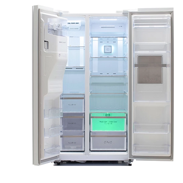 بدنه این ساید بای ساید به رنگ سفید متالیک و گنجایش این محصول 35 فوت می باشد.