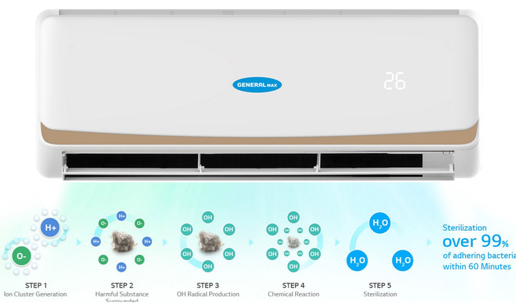 - سیستم ضد باکتریای: کولر گازی جنرال مکس از سیستم ضد باکتریای برای جلوگیری از رشد میکروبها استفاده میکند. این سیستم باعث نگهداری قسمتهای داخلی کولر در وضعیت خشک بوده و رشد باکتریها را کاهش میدهد.