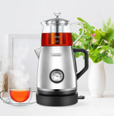 این چای ساز دارای یک قوری شیشه ای 0.7 لیتری است که درون آن یک تفاله گیر استیل ضد زنگ وجود دارد.