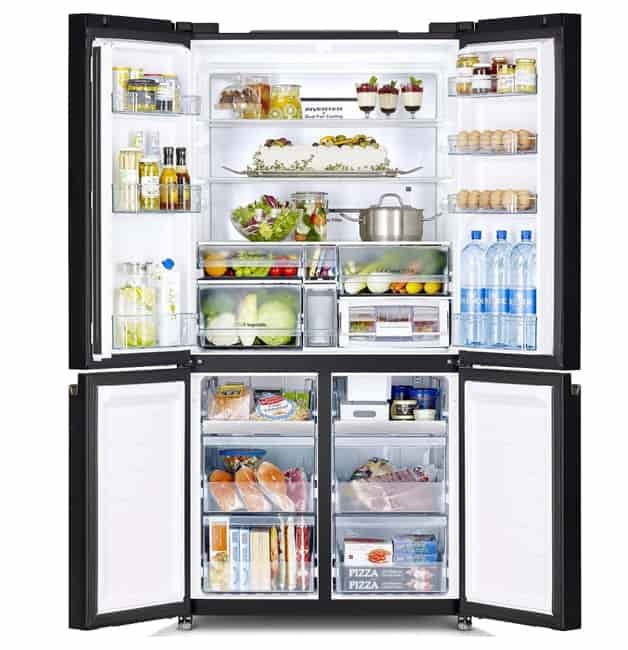 این یخچال با ظرفیت کل 32 فوت، فضای زیادی را برای نگهداری مواد غذایی، نوشیدنیها و … فراهم میکند. طراحی چهار درب آن، محفظه های مختلف را از هم جدا می کند و به شما این امکان را می دهد که به راحتی به بخش های خاصی دسترسی داشته باشید بدون اینکه مزاحمتی برای بقیه قسمت های یخچال ایجاد کنید.