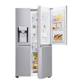 یخچال ال جی GCJ_267PXW با کمپرسور اینورتر خطی منحصر به فرد از یک درایو پیستونی متحرک خطی استفاده می کند. پیستون مانند یک کمپرسور سنتی به جلو و عقب حرکت نمی کند تا اصطکاک کمتری ایجاد کند. این کمپرسور خطی می تواند تا 32 درصد در مصرف برق صرفه جویی کند. گنجایش بیش از 600 لیتر به شما امکان می دهد غذا و نوشیدنی بیشتری را مرتب و ذخیره کنید. با یخچال ساید بای ساید ال جی می توانید انواع مواد غذایی را که می خواهید در یک مکان نگهداری کنید ویژگی Balancer در یخچال ال جی برای حفظ رطوبت برای استفاده بهینه عمل می کند. این ویژگی جعبه سبزیجات را مهر و موم می کند تا میوه و سبزیجات تازه ماندگاری بیشتری داشته باشند. در همین حال، ویژگی Moist Balance Crisper آب باقیمانده غذا را تبخیر می کند و شبنم روی غذای شما ایجاد می کند. این ویژگی قادر است تعادل شبنم را در جعبه نگهداری میوه و سبزیجات حفظ کند تا به سرعت پوسیده نشود. اگر به یخچالی با ظرفیت زیاد نیاز دارید، برای تکمیل مبلمان الکترونیکی منزل، یخچال ساید بای ساید ال جی را انتخاب کنید. دستگاه پخش آب و یخ: دستگاه پخش آب و یخ یخچال های ال جی برای ظروف بزرگتر از جمله پارچ و لیوان های کوچک طراحی شده است. و از آنجایی که یخساز Slim SpacePlus یخچال های ما کاملاً در درب یخچال قرار دارد، فضای قفسه بیشتری برای نگهداری اقلام و یافتن سریع آنها خواهید داشت. یخچالهای الجی دارای ویژگیهای نوآورانهای هستند که طیف وسیعی از سبکهای زندگی و تنظیمات آشپزخانه را تکمیل میکنند. فضاهایی که به طور هدفمند طراحی شده اند به شما کمک می کنند تا فضای ذخیره سازی خود را به حداکثر برسانید تا بتوانید همه آن را در این یخچال ساید بای ساید پیدا کنید. سطل های درب گالن قابل تنظیم به شما انعطاف پذیری بیشتری در بارگیری می دهد. یخچال با یخ و آب پخشکننده به شما امکان میدهد بدون باز کردن درب، یخ و آب دریافت کنید، در حالی که چراغهای الایدی نیز غذا را به همان اندازه که طعم و مزه دارد، حفظ میکند