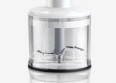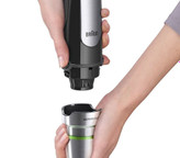 یک لیوان بلند پلاستیکی فاقد BPA با گنجایش 600 میلی لیتر به عنوان یک پارچ جهت مخلوط کردن و هم زدن مواد غذایی استفاده می شود. پایه گوشتکوب و تیغه های بسیار تیز با دو پره از جنس استیل ضد زنگ و مقاوم در برابر آب هستند. لوازم جانبی این محصول braun mq7035bi همگی قابل شستشو حتی در ماشین ظرفشویی هستند.