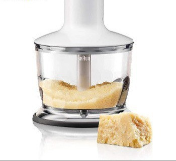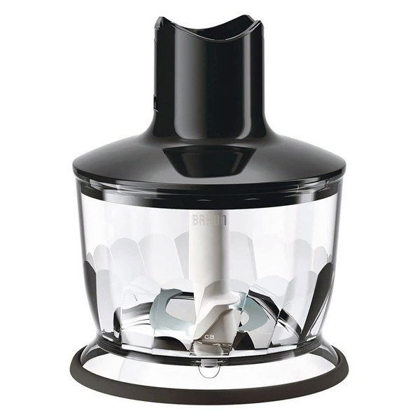 گوشت کوب برقی براون (braun) مدل MQ3135 دارای یک عدد سری همزن و یک عدد ظرف خردکن نیز میباشد که بدنه این خردکن پلاستیکی و گنجایش آن 500 میلی لیتر است. همچنین همراه این دستگاه یک عدد لیوان 600 میلی لیتری نیز قرار دارد که کمک میکند تا مواد غذایی را در داخل با استفاده از گوشت کوب برقی کاملا میکس و پوره کرد.