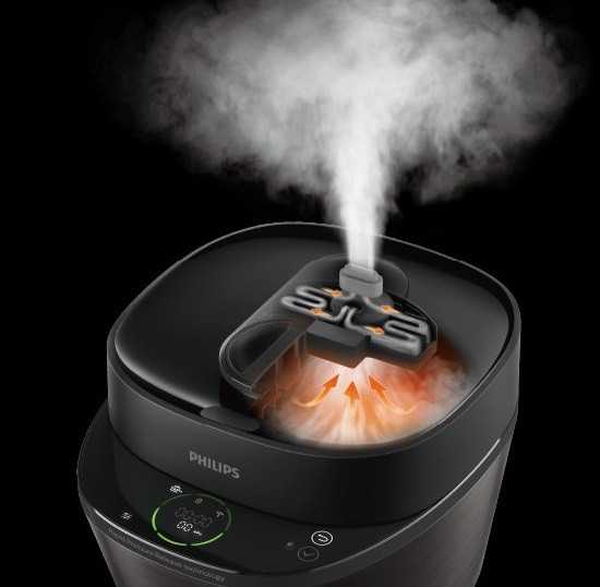 سیستم ایمنی: شرکت فیلیپس برای این محصول خود 18 سیستم حفاظت ایمنی برای پخت و پز بدون نگرانی در نظر گرفته که یکی از آنها خاموشی خودکار میباشد. نحوه عملکرد این سیستم اینگونه است که اگر دستگاه بدون آب روشن شود یا دمای آن خیلی بالا رود، دستگاه به طور خودکار خاموش می شود. از دیگر ویژگی های امنیتی این مولتی کوکر میتوان به پایه های ضد لغزش آن اشاره کرد که در هنگام کار از هرگونه لغزش جلوگیری میکنند.