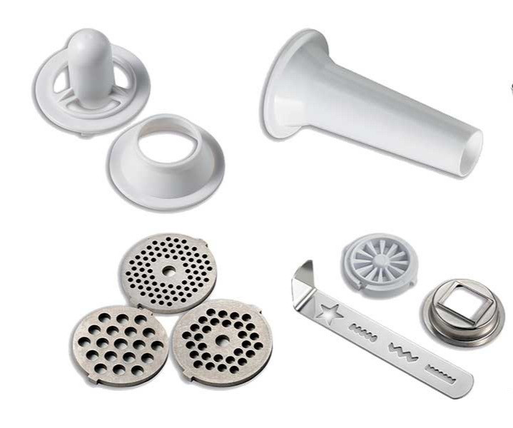 به همراه این چرخ گوشت سه نوع دیسک مختلف قرار دارد.جنس این صفحات از فولاد بوده و کاملا مقاوم و ضد زنگ هستند.هر کدام از این صفحات دارای روزنه هایی برای رشته کردن گوشت است و می توانید با استفاده از انها گوشت را در اندازه باریک،متوسط و درشت به صورت رشته ای در بیاورید.