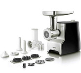 مشبک های همراه این دستگاه دارای ۳ عدد در سه سایز ۳،۵ و ۸ میلیمتری میباشد که میتوانید در سایز دلخواهی خود گوشت را چرخ کنید. برای تمیزی راحت تر این مشبک ها ابزار مخصوصی جهت تمیزی بیشتر این تیغه ها تعبیه شده که کافیست ابزار را داخل مشبک فرو ببرید. و آنرا زیر آب تمیز کنید. با رنده ی مخصوص سبزیجات و میوه ها کار رنده کردن را راحت تر انجام دهید.