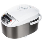 ظرف مخصوص این مولتی کوکر دارای گنجایش 1.8 لیتری است و برای آماده سازی غذای حداکثر 10 نفر میتواند مورد استفاده قرار بگیرد. این ظرف همچنین دارای روکش طلایی 5 لایه، نچسب و ضدخش میباشد.
