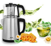 تفال، یکی از اولین برندهایی است که هنگام صحبت در مورد چای ساز برقی به ذهن خطور می کند. این مدل دستگاه چای ساز تفال از یک قوری استیل ضد زنگ و یک کتری تشکیل شده است.