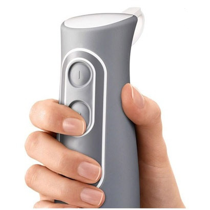 همچنین، فشار دادن دکمه ها باید بدون زور زیاد انجام شود. در حالت ایده آل، انگشتان شما باید وقتی دستگیره را می گیرید به طور طبیعی روی دکمه ها بیفتند. ما دسته های لاستیکی ضد لغزش و نرم و راحت گوشت کوب برقی براون مدل Braun MQ500 را می توانید به راحتی در دست بگیرید.