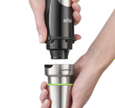 این دستگاه به گونه ای طراحی شده است که می توانید انواع تجهیزات مختلف را بنا به نیاز به آن متصل نمایید. این تجهیزات شامل یک لیوان، همزن استیل، خرد کن و آسیاب می باشد که در قسمت های تعبیه شده وصل می شوند. میزان گنجایش خرد کن 350 میلی لیتر بوده و با توجه به قدرت موتور فوق العاده بالا قادر است مواد غذایی خیلی سفت را تا دو برابر از سایر دستگاه های پیشین خود ریز کند. یعنی برای تهیه پودر قهوه می توانید به راحتی با گوشت کوب برقی براون مدل MQ9038 این کار را انجام دهید و اسپرسو خوش طعمی را نوش جان نمایید. میزان سرعت ریز کردن دستگاه نسبت به