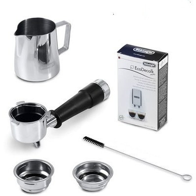 - دارای لوازم جانبی کامل و بی نیاز از خرید وسایل می باشد. این لوازم ها عبارتند از: تعداد دو عدد سبد پرتافیلتر به صورت یک و دو شات، برس جهت تمیز سازی دستگاه و ظرف شیر می باشد.