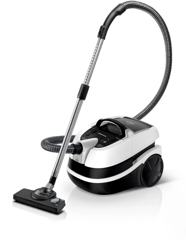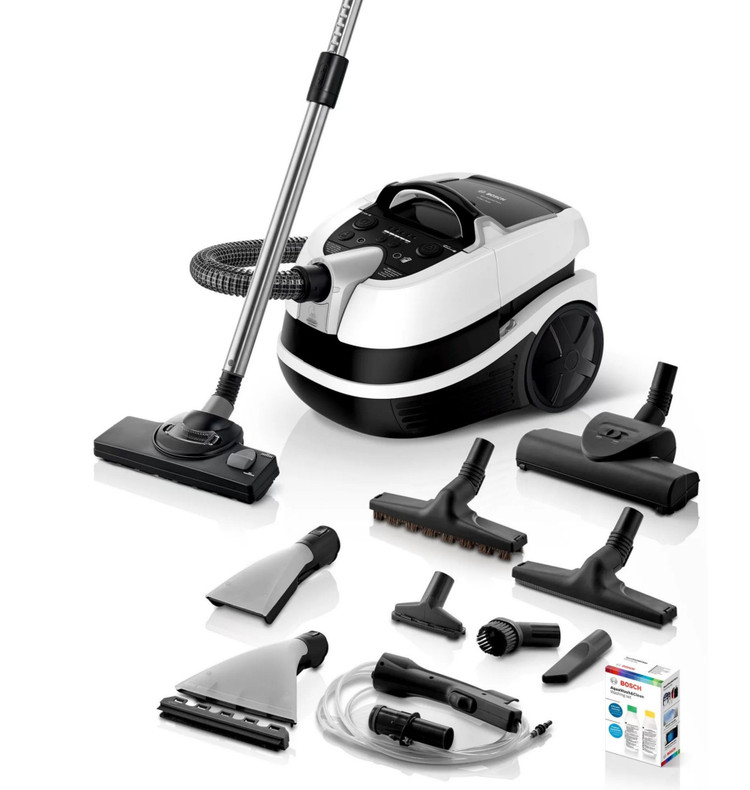 جاروبرقی آب و خاک بوش BWD421PRO یا BWD421 رنگ سفید مشکی یکی دیگر از جاروبرقی های حرفه ای بوش است که در سال 2019 وارد بازار شد. این جارو برقی چند کاره، از جمله جاروبرقی های سری 4 بوش می باشد که برای نظافت انواع سطوح خشک یا خیس می تواند مورد استفاده قرار گیرد. محصول مذکور ممکن است با مدل BWD421 در بازار شناخته شود که البته مدل کامل آن نیست و احتمال دارد از نظر طراحی یا امکاناتی که دارد، با مدل های هم نام خود متفاوت باشد. محصول پیش روی شما با مدل کامل BWD421PRO و مونتاژ لهستان وارد بازار ایران شده است. جاروبرقی بوش BWD421PRO به یک موتور قدرتمند با توان 2100 وات مجهز می باشد. البته امکان تنظیم قدرت این جاروبرقی 2100 وات بوش در 5 سطح مختلف وجود دارد و شما بسته به نیاز خود می توانید توان موتور را تنظیم کنید. محصول فوق دارای چندین فیلتر مختلف است که از جمله مهمترین آن ها می توان به فیلتر هوای ورودی و خروجی موتور اشاره کرد. فیلتر ورودی هوا به موتور از جنس فوم است و قابل شستشو می باشد. این فیلتر تا حد زیادی از ورود گرد و غبار به موتور جلوگیری می کند که باعث طولانی تر شدن عمر موتور و عملکرد بهتر آن می گردد. بوش این جاروبرقی را به فیلتر خروجی هوا از نوع HEPA مجهز کرده که از خروج ذرات آلرژی زا از جاروبرقی جلوگیری می کند. جاروبرقی پیش روی شما از جمله جاروبرقی های چند کاره بوش است که با عنوان جاروبرقی AquaWash & Clean نیز شناخته می شود. جاروبرقی 5 لیتر بوش BWD421PRO عملکرد های مختلفی دارد و جزو جاروبرقی های 3 در 1 یا سه کاره به حساب می آید. محصول مذکور از نوع آب و خاک می باشد و قابلیت جمع آوری مایعات و زباله های خشک را دارد. شما با استفاده از این جاروبرقی علاوه بر فرش، موکت، مبلمان و پارکتی، می توانید به شستشوی شیشه ها نیز بپردازید. جاروبرقی مذکور، به یک مخزن بزرگ با ظرفیت 5 لیتر مجهز می باشد که می تواند برای جمع آوری مایعات مورد استفاده قرار گیرد. این مخزن دارای یک دستگیره است تا به راحتی بتوانید آن را از جاروبرقی خارج کرده و تخلیه یا نظافت کنید. همانطور که گفته شد این محصول قابلیت جمع آوری زباله های خشک را نیز دارد. این جاروبرقی از کیسه با ظرفیت 2.5 لیتر پشتیبانی می کند. زمانی که می خواهید از محصول فوق برای جمع آوری زباله های خشک استفاده کنید، باید این کیسه را درون مخزن نصب کنید. لازم به ذکر است که بطور همزمان نمی توانید به جمع آوری آشغال های خشک و مایعات بپردازید و باید بسته به نیاز خود از کیسه یا مخزن استفاده کنید. جاروبرقی پیش روی شما قابلیت اسپری دارد و دارای یک مخزن مجزا برای مواد شوینده و آب است. به همراه این محصول یک شیلنگ مخصوص ارائه می شود که روی لوله نصب می شود و شما می توانید از آن برای اسپری آب و مواد شوینده استفاده کنید تا به شستشوی فرش، موکت و یا مبلمان بپردازید. جاروبرقی 2100 وات بوش BWD421 لوازم جانبی و نازل های مختلفی دارد که می توانید از آن ها برای شستشو یا نظافت انواع سطوح مختلف استفاده نمایید. نازل اصلی که به همراه این جاروبرقی ارائه می شود، دارای 2 حالت مختلف است و می توانید از آن برای نظافت فرش و موکت و یا حتی سطوح صاف و سخت استفاده کنید. این نازل مجهز به یک محفظه کوچک است که در زمان جارو کشیدن، می تواند اشیاء بزرگ تر مانند گوشواره یا حلقه را جدا کرده و از ورود آن ها به داخل کیسه یا مخزن جاروبرقی جلوگیری کند. به همراه این محصول یک نازل مخصوص حیوانات یا Turbo Brush نیز وجود دارد که می توانید از آن برای جمع آوری پرز و موی حیوانات خانگی مانند گربه و سگ استفاده کنید. نازل های مخصوص سطوح سخت و پارکت نیز در کنار این جاروبرقی عرضه می شود که برای نظافت کامل سطوح سخت مانند کاشی، سرامیک و پارکت بسیار مناسب هستند. نازل های رایج مانند نازل مخصوص مبلمان و پرده و همچنین نازل مخصوص درز و شکاف ها در جعبه این محصول وجود دارد. همانطور که گفته شد محصول پیش روی شما قابلیت شستشو توسط اسپری آب را دارد و برای این کار نازل های مخصوصی به همراه جاروبرقی فوق ارائه می شود. نازل هایی ب