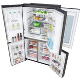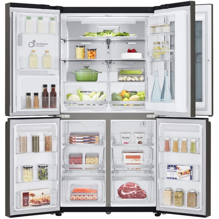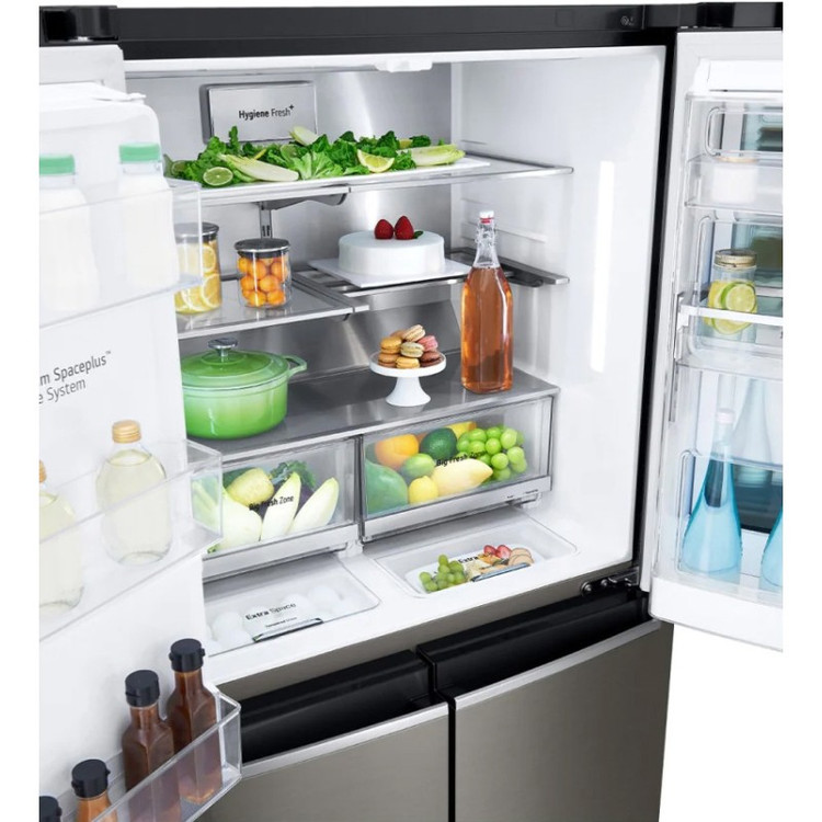 یخچال فریزر ال جی X24 یا GR-X24FMKBL رنگ دودی از جدید ترین یخچال فریزر های 2021 می باشد. این محصول با مدل کامل GR-X24FMKBL مونتاژ کره وارد ایران شده و به فروش می رسد. البته برخی از فروشگاه ها به اشتباه این مدل را به عنوان رنگ دیگر یخچال فریزر ال جی GMX945NS9F معرفی می کنند که اشتباه است؛ در واقع این دو محصول تفاوت های دیگری نیز با یکدیگر دارند. موتور به کار رفته در این یخچال فریزر از نوع اینورتر خطی است که به آن Inverter Linear گفته می شود. از ویژگی های این موتور می توان به قدرت بسیار بالای آن و زمان خنک کنندگی کم آن اشاره کرد. به کمک موتور معرفی شده، دمای یخچال و فریزر نوسان بسیار کمی دارد و موجب می شود تازگی مواد غذایی برای مدت طولانی تری حفظ شود. ال جی کارکرد و عمر موتور یاد شده را تا 10 سال تضمین می کند. یخچال فریزر X24 مجهز به سیستم خنک کننده Multi Air Flow می باشد که برای گردش هوا با دمای یکنواخت بین یخچال و فریزر طراحی شده است. این کار توسط دریچه هایی که در داخل فریزر و یخچال تعبیه شده اند، انجام می شود و سبزیجات و مواد غذایی را تازه نگاه می دارد. یخچال فریزر ساید بای ساید ال جی GR-X24FMKBL دارای یخچال در قسمت بالا و فریزر در قسمت پایین است و می توانید از طریق 4 درب به داخل آن دسترسی داشته باشید. این محصول مجهز به تکنولوژی Door Cooling+ است که باعث می شود مواد غذایی موجود در درب یخچال نیز کاملا سرد شده و تازگی آن ها حفظ شود. این محصول دارای تکنولوژی Hygiene FRESH+ نیز می باشد که وظیفه تصفیه کردن هوای داخل یخچال و جلوگیری از ایجاد بوی بد مواد غذایی توسط فیلتر 5 لایه اش را بر عهده دارد. این یخچال فریزر از گاز R600a برای خنک کردن فضای داخلی استفاده می کند که یکی از گاز هایی است که با وجود عملکرد مطلوبش، کمترین آسیب را به محیط زیست می زند. یخچال فریزر ساید بای ساید ال جی GR-X24 دارای ظرفیت کلی 705 لیتر می باشد که برابر با 25 فوت است. البته در بازار ممکن است به اشتباه با ظرفیت 30 فوت معرفی شود که درست نیست. ظرفیت خالص و یا واقعی محصول معرفی شده برابر با 563 لیتر است که فضای مناسبی برای منزل شما محسوب می شود. در قسمت بالا و یخچال این محصول 3 طبقه وجود دارد که می توانید بخشی از مواد غذایی خود را روی آن ها و بخشی از آن ها را در 6 طبقه درب یخچال قرار دهید. در قسمت فریزر آن نیز 6 کشو وجود دارد که می توانید مواد غذایی خود را برای مدت طولانی تری در آن نگه دارید. آب ریز و یخ ریز این محصول به آب شهری وصل می شود و دارای فیلتر برای تصفیه آب می باشد. تکنولوژی UVnano در این محصول به کار رفته که با استفاده از نور فرابنفش، باکتری های موجود در آب را تا 99.99% از بین می برد و باعث می شود آب را به صورت کاملا تمیز و به دور از بیماری ها در دسترس داشته باشید. یخ ساز محصول معرفی شده به صورت اتوماتیک و خودکار کار می کند که SpacePlus نام دارد و با طراحی باریکش فضای بسیار کمی از فریزر را اشغال می کند. یخ ریز یاد شده یخ را به صورت خرد و حبه ای در اختیار شما قرار می دهد و نیازی به پر کردن دستی ندارد. نحوه کار آب ریز و یخ ریز به این صورت است که به صورت خودکار پر می شود و شما به آسانی می توانید از آن ها استفاده نمایید. برای این کار تنها لازم است که از پنل بالای قسمت آب ریز و یا یخ ریز حالت مورد نظرتان را انتخاب کنید. یخچال فریزر چهار درب ال جی GR-X24FMKBL مجهز به قابلیت Express Freeze بوده که باعث می شود به صورت سریع بتواند سرمایش خوبی را در فریزر و یخ ساز به وجود آورد. با استفاده از قابلیت معرفی شده، شما می توانید خرید های خود را در یخچال فریزر مذکور قرار داده و دمای آن ها را به سرعت پایین آورده تا تازگی آن ها حفظ شود. این محصول دارای قفسه تاشو یا Folding Shelf بوده که ال جی آن را برای استفاده بهینه از تمام فضای موجود در یخچال فریزر طراحی کرده است و می توانید بطری ها و ظرف های مختلف با ارتفاع های گوناگون را در کنار هم به راحتی قرار دهید. ال جی این محصول را به صورت هوشمند طراحی کرده و می توانید آن را به اینترنت منزل خود متصل نمایید. در نتیجه شما می توانی