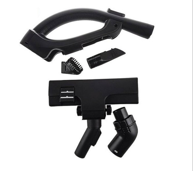 دسته این مدل جارو دارای طراحی منحصر به فرد و آرگونومیک بوده و زیر آن یک محفظه مخفی جهت قرارگیری دو عدد نازل که مناسب جارو کشیدن گوشه ها و روی مبل است در نظر گرفته شده تا در صورت نیاز به راحتی قابل دسترس باشند. در زیر