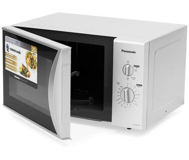 یکی از مدل های خوش قیمت این برند مدل Panasonic NN-SM332 Microwave می باشد که جز مایکروویو های ارزان قیمت بازار با کیفیت خوب می باشد. مایکروویو NN-SM332 در رنگ سفید تولیدشده و دارای ظرفیت 25 لیتر می باشد که در این رنج قیمت مناسب می باشد.همچنین این مدل دارای قابلیت یخ زدایی دستی نیز هست.توان این مدل خوش قیمت نیز 800 وات می باشد که با این توان شما می توانید به اماده سازی غذاهای لذیذ ایرانی و فرنگی بپردازید.از دیگر مشخصات مایکروویو NN-SM332 نیز سینی گردان 288 میلیمتری و قابلیت تنظیم زمان و دارای 5 سطح مایکروویو می باشد.همچنین پنل این مایکروویو دارای دو ولوم تنظیم می باشد که ولوم بالایی در اصل برای تنظیم کردن 4 حالت پخت تا 4 درجه و یک حالت یخ زدایی می باشد و ولوم پایینی نیز برای تنظیم زمان از 0 تا 35 دقیقه می باشد و همچنین وزن از 0 تا 1 کیلوگرم می باشد