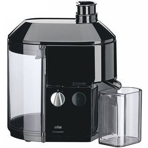 آبمیوه گیری براون مدل MP80 ، با توان 600 وات انواع آب میوه های خوشمزه و سالم را در کمترین زمان ممکن فراهم می کند. این دستگاه ساخت کشور چک می باشد. فیلتر استیل به صورت کاملأ بهداشتی آب میوه ها را گرفته و تفاله را از آب میوه جدا می سازد. جهت شستشوی فیلتر می توان آن را از بدنه جدا نمود. پس از قرار دادن میوه در دهانه، با استفاده از فشاری همراه دستگاه می توان میوه را به داخل دهانه هدایت کرد. دستگاه آب میوه گیری دارای ظرف آب گیری می باشد که در زیر دهانه خروجی آب میوه قرار می گیرد. در داخل ظرف صافی جهت جدا سازی پالپ میوه از آب میوه قرار داده شده است که امکان تهیه آب میوه شفاف را فراهم می کند. ویژگی این دستگاه مجهز بودن به ظرف تفاله گیری است که امکان آب گیری پیوسته را فراهم می کند. ظرف تفاله متصل به بدنه می باشد در نتیجه تفاله میوه به هیچ وجه به اطراف پخش نخواهد شد. پس از پر شدن می توان این ظرف را از بدنه جدا نمود و تخلیه کرد. بر روی بدنه دکمه روشن/ خاموش قرار دارد. این آب میوه گیری مجهز به سیستم ایمنی است. به این صورت که دستگاه تنها در صورتی که درپوش کاملأ در وضعیت درست قرار گرفته و به بدنه قفل شود کار خواهد کرد. در صورتی که از آب میوه گیری به مدت طولانی استفاده شده و موتور دستگاه داغ گردد فیوز ایمنی به صورت خودکار دستگاه را خاموش می کند. در این صورت بایستی ابتدا دکمه خاموش را زده و درپوش را باز نمائید. سپس حلقه آب گیری، فیلتر و درپوش را تمیز نمائید. اجازه دهید تا حدود 20 دقیقه دستگاه خنک شود. حال می توانید مجددأ از آب میوه گیری استفاده نمائید. موتور دستگاه به سرعت و تنها دو ثانیه پس از قرار دادن دکمه انتخاب گر در حالت خاموش به صورت کامل خاموش خواهد شد. پایه های ضد لرزش دستگاه از لغزش و تکان خوردن آن در زمان کارکرد جلوگیری می کنند. در هنگام عدم استفاده از دستگاه می توان سیم را در محفظه ی مخصوص آن قرار داد. تمامی قسمت های آب میوه گیری قابل جدا شدن از هم بوده و می توان آن ها را به جز بدنه در ماشین ظرفشویی قرار داد