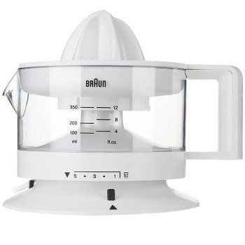 آب مرکبات گیری براون مدل CJ3000 یا همان آب پرتقال گیری براون،محصولی کاربردی و خوش ساخت است که از کیفیت ساخت بالایی بهره مند گردیده و یک موتور با قدرت 20 وات دارد. این دستگاه آب مرکبات گیر براون دارای بدنه ای از جنس پلاستیک می باشد. این دستگاه دارای سری بزرگ می باشد که با استفاده از آن کار آب مرکبات گیری بسیار راحت است؛سری آن به صورت ارگونومیک ساخته شده و برای آب گیری انواع مرکبات کوچک و بزرگ بسیار مناسب است. چرخش سری آب مرکبات گیری Braun CJ 3000 به صورت دو طرفه طراحی گردیده و چرخش به سمت راست و چپ، موجب آبگیری کامل تر مرکبات می شود.با داشتن قابلیت تنظیم فیلتر از درجهی 1 تا 5 به شما این امکان را می دهد تا میزان ورودی پالپ یا پوره پرتقال به آبمیوه را تنظیم کنید. این قابلیت در زیر مخزن دارای نشانگر تنظیم است که با استفاده از آن می توانید به آسانی دستگاه را تنظیم کنید. ظرف آبمیوهی این دستگاه مدرج است و به دو واحد لیتر و اونس مقدار آبمیوه را داخل ظرف نمایش می دهد.