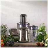 آبمیوه گیری سیج مدل SJE830 با موتور قدرتمند 1500 وات، قابلیت تنظیم سرعت و دهانه ورودی 88 میلی متر می تواند پنج برابر سریعتر از آبمیوه گیری پرس سرد، آب میوه ها را بگیرد.