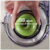 در قسمت بالای این آبمیوه گیری لوله استوانه ای شکل بزرگ طراحی شده که میوه ها و سبزیجات را می توان از آن وارد دستگاه کرد. اندازه دهانه ورودی میوه ها 88 میلی متر بوده که بسیاری از میوه ها و سبزیجات را می توان بدون برش آبگیری کرد.