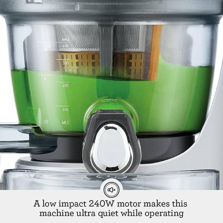 توان مصرفی عصاره گیر سیج 240 وات بوده و کاملاً به صورت بی صدا فرآیند آبمیوه گیری را برای شما انجام می دهد. آبگیری میوه جات در عصاره گیر مدل SJS700SIL سیج به کندی صورت می گیرد، بنابراین مواد مغذی کمتری هدر خواهد رفت و شما آبمیوه سالم تر و طبیعی تری را دریافت خواهید کرد.