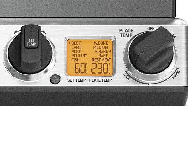 این دستگاه از 2 صفحه پخت جداشونده با پوشش نچسب تشکیل شده که جنس بدنه خارجی آن از استیل ضد زنگ و جنس دستگیره های آن نیز از جنس استیل ساخته شده اند. روی این بدنه یک نمایشگر LCD و 3 عدد دکمه با عملکردهای مختلف تعبیه شده اند که یکی از این دکمه ها برای تبدیل دما از واحد سانتیگراد به فارنهایت کاربرد داشته و 2 دکمه دیگر نیز برای جدا کردن صفحات مورد استفاد قرار میگیرند.