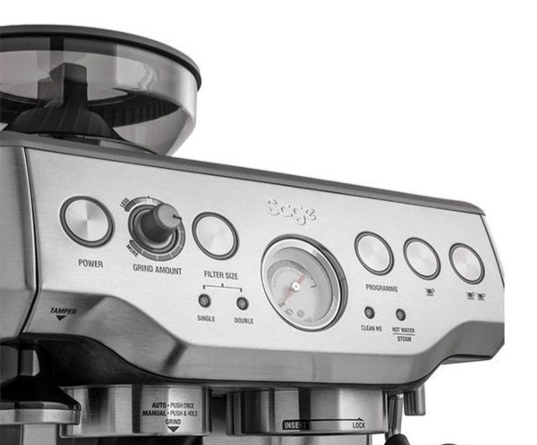 - اسپرسوساز مدل SES875UK به دلیل داشتن آسیاب جهت خرد کردن دانه های قهوه، امکان استفاده از دانه و یا پودر قهوه را فراهم کند.