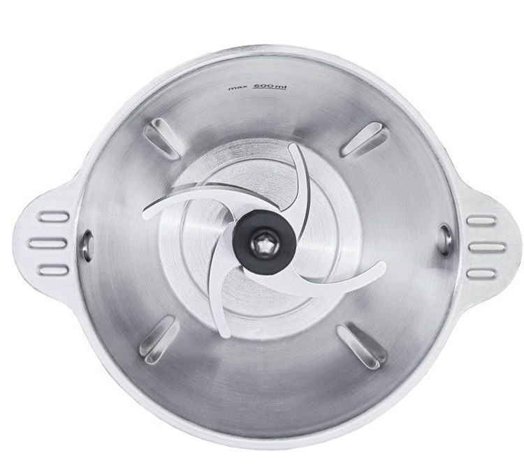 ظرف کار استیل با حجم 0.6 لیتر کیفیت بالا دارد و برای مقادیر بزرگتر نیز مناسب است. با اتصال Dripper Pro، میتوانید مایعات را در حین پردازش اضافه کنید. دارای کفی بدون لغزش برای ثابت نگهداشتن کاسه روی صفحه کار، حلقه کابل برای نگهداری منظم بعد از استفاده و جعبه کوچک و سیستم ایمنی است. قابلیت جدا شدن آسان اجزای خردکن جهت تمیز کردن را دارد. کاسه را میتوانید پس از استفاده از آن برای تهیه انواع سسها، سالاد و … در ماشین ظرفشویی قرار دهید