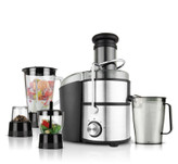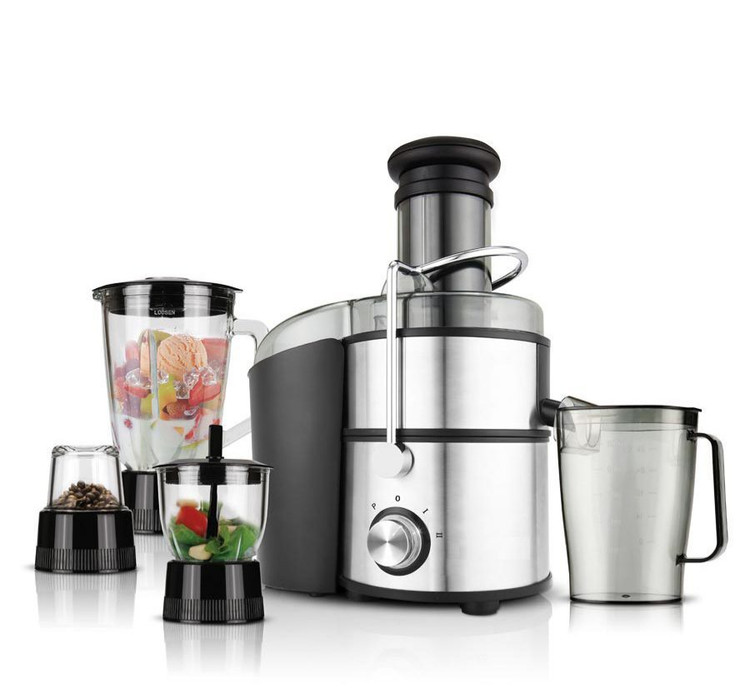 آبميوه گيرى ٤ كاره پاناسونيك مدل KJ-8900 با طراحى زيبا، بسيار كاربردى است. اين آبميوه گيرى با توان ١٨٠٠ وات بسيار قدرتمند است. و نسبت به سرى قديم نقص هاى آن برطرف شده از جمله، صدا و لرزش كمترى نسبت به نسخه قديم دارد. اين دستگاه داراى دو مخزن تفاله گير و پارج آبميوه است. با وجود اين دستگاه ميتوانيد انواع ميوه ها را به آبميوه تبديل كنيد. آبميوه گيرى ٤ كاره پاناسونیک امكان تنظيم سرعت در دو سطح را براى شما فراهم كرده است. در زير دستگاه پايه هاى طراحى شده كه مانع از لغزش و افتادن دستگاه در حين كار مي شوند. همچنين اين دستگاه داراى قابليت آسياب، خرد كن و مخلوط كن نيز مي باشد، كه نياز شما را از خريد آسياب، خرد كن و مخلوط كن برطرف سازد.