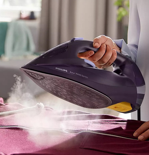 اتو بخار فیلیپس مدل PHILIPS DST7051 به رنگ بنفش از طراحی شکیل و چشم نوازی بهره می برد. در کنار کیفیت ساخت بدنه و بخاردهی عالی، ابعاد جمع و جور، وزن مناسب و خوش ساخت بودن این اتو موجب شده تا اتوکشی به کاری لذت بخش تبدیل گردد.
