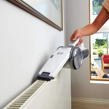 - چرخش بسیار زیاد نازل جارو به اندازه 200 درجه است. یعنی می توانید آن را در مکان هایی که دسترسی به آن قسمت دشوار است استفاده کنید. مثلا برای تمیز کردن راهروهای بین کمد و دیوار، بالای قفسه های کتابخانه، زیر میز و … استفاده کرد. همچنین وجود چرخش مناسب نازل حتی ما را قادر می سازد زیر کف مبل را هم به خوبی تمیز کنیم. از دیگر مزیت این جارو شارژی بلک اند دکر مدل PV1420 استفاده از آن در مسافرت ها برای تمیز کردن داخل اتومبیل و چادرهای مسافرتی می باشد.