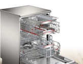 ماشین ظرفشویی بوش مدل SMS8ZDI86Q مجهز به سه سبد شستشو که دارای قابلیت تنظیم ارتفاع هستند و یک سبد مجزای قاشق و چنگال می باشد. از آن جایی که سبدها به راحتی جا به جا می شوند می توانید فضای بیشتری را برای شستشوی قابلمه، ماهی تابه و ظروفی که حجم زیادی می برند ایجاد کنید.