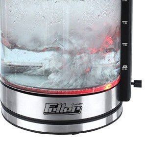چای ساز فلر(feller) مدل TS285 دارای 2000 وات توان است و تنها چند دقیقه زمان میبرد تا آب را به دما جوش برساند. این کتری قابلیت چرخش 360 درجه را دارد و همچنین دارای عملکرد گرم نگهدارنده و قطع کن خودکار نیز میباشد. همچنین این دستگاه دارای چراغ نشانگر هنگام به جوش آمدن آب نیز میباشد.
