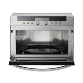 برنامه مایکروویو نیز روی بدنه آن با سه عدد موج نشان داده می شود. با استفاده از این برنامه شما قادر می باشید که مواد غذایی را داخل آن گرم کنید و حتی به پخت آن بپردازید. برنامه مایکروویو دارای دما و توان مختلفی می باشد که می توانید آن را با توجه به نوع مواد غذایی مناسب انتخاب کنید. برای استفاده از برنامه مایکروویو فقط کافی است برنامه مایکرویو و دمای مناسب را انتخاب کنید و گزینه شروع یا همان start را بفشارید.
