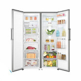 این محصول زیبا و جادار در بحث خوش استایل بودن، حرف برای گفتن دارد. کیفیت عالی مواد سازنده بدنه از برو روی آن می بارد. در دو رنگ سفید و نقرهای موجود است که هر کدام در دکوراسیون های مختلف می درخشند. دستگیره های خوش دست با حالت استاندارد روی درب یخچال و همچنین فریزر جاسازی شده است که هارمونی جذابی را روی بدنهی استیل ضد زنگ به وجود آورده است و عملکرد باز و بسته کردن را آسان تر می کنند. پنل های متفاوتی روی درب در قسمت بالا دیده می شود تا کاربر را از تنظیمات و دمای یخچال فریزر آگاه سازند.
