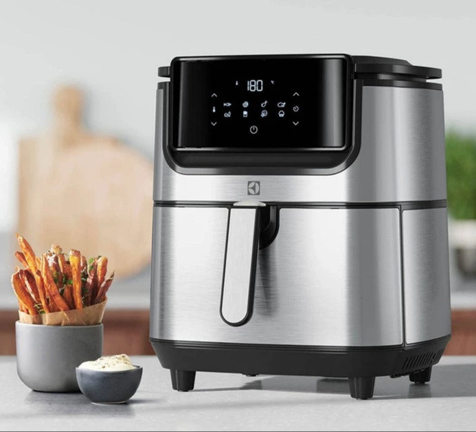 سرخ کن الکترولوکس مدل E5AF1-710S با طراحی شیک و مدرن به رنگ نقره ای/مشکی در گوشه آشپزخانه تان به زیبایی می درخشد.
